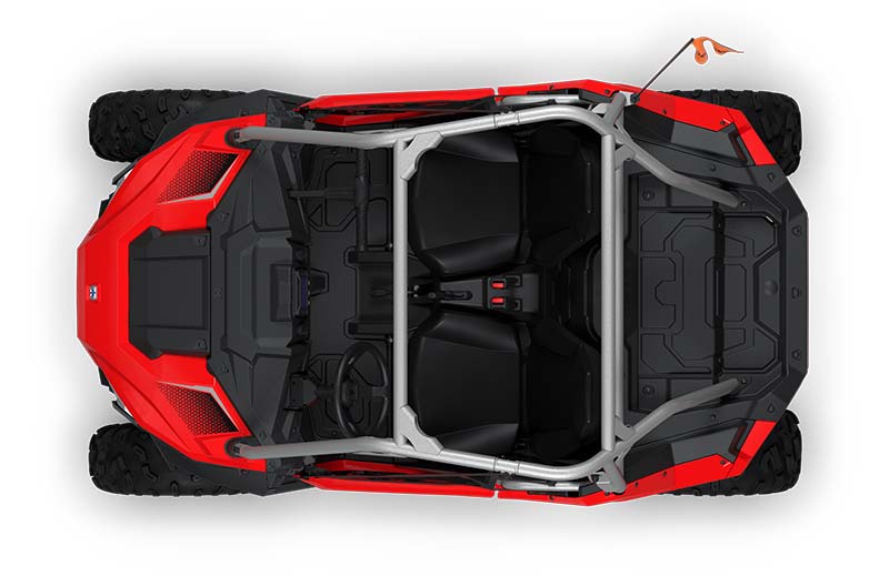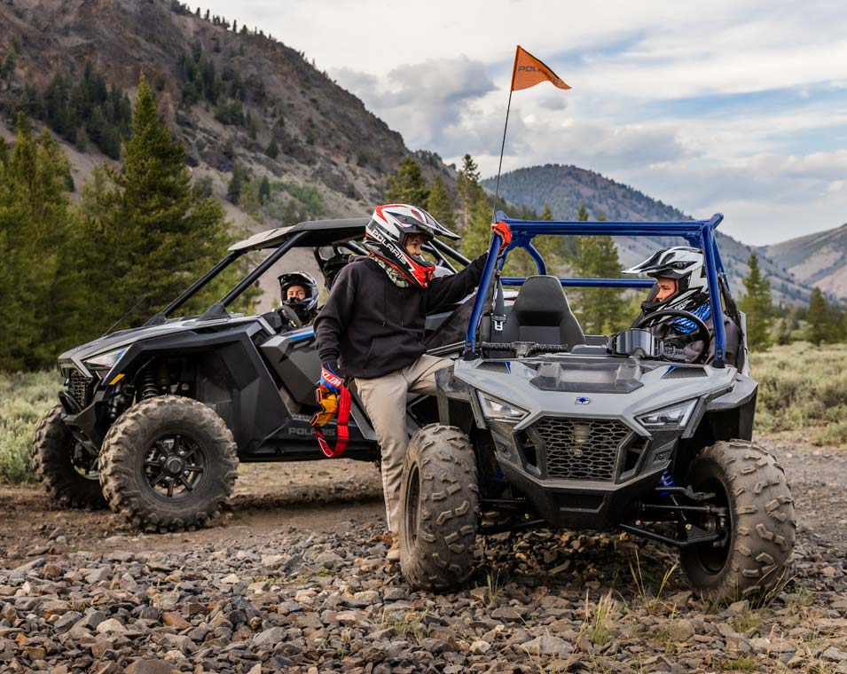 Desfrute a tranquilidade de saber que a série RZR vem equipada com funcionalidades de segurança líderes na indústria, incluindo arranque através de código pin, limitador de velocidade ajustável, geofencing, redes de segurança, kit de segurança exclusivo na indústria e tecnologia de deteção de capacete.