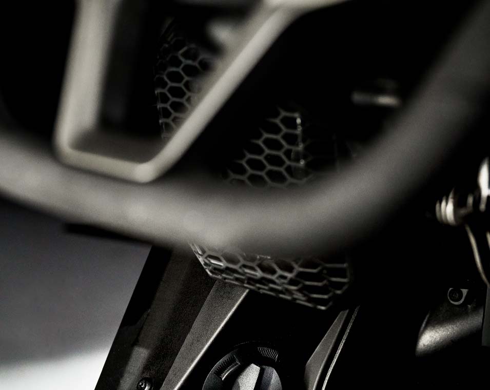 Sistema de carregamento de alta potência de 1700 W a 3000 RPM. Volante de inspiração desportiva com regulação de inclinação e telescópica; comandos DYNAMIX e RIDE COMMAND por botões.