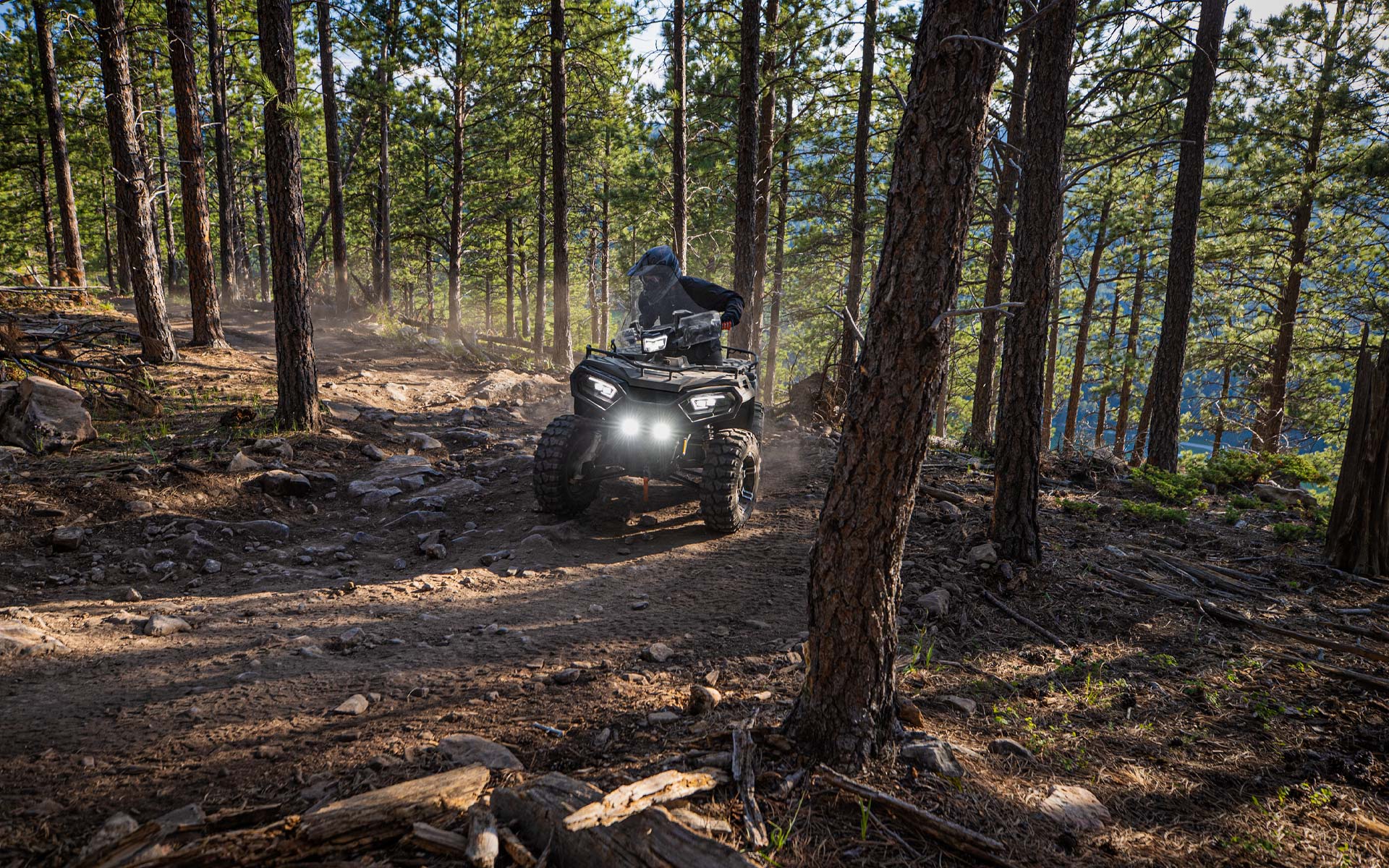 Avança com confiança para além da próxima curva com o Sportsman 570. Equipado com a capacidade e robustez para ires mais longe e descobrires mais.